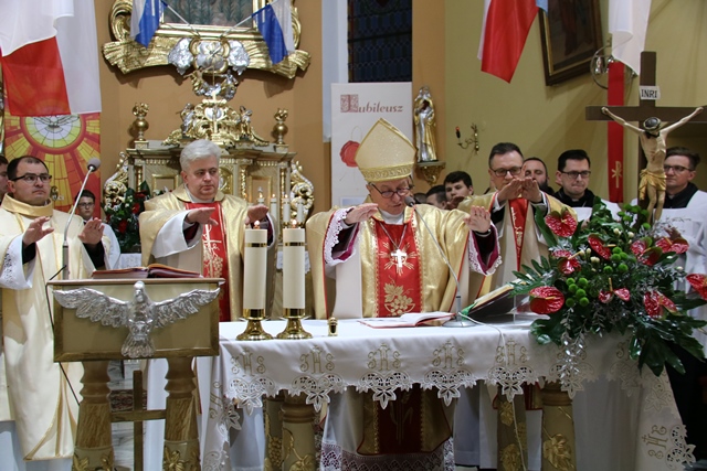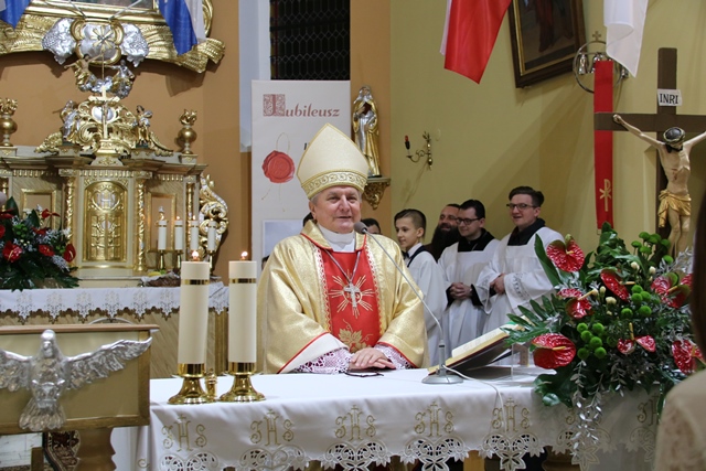 W homilii celebrans dziękował proboszczowi i wiernym za troskę o świątynię. - Pragnę podziękować za waszą miłość do Kościoła, za troskę o świątynię, za ofiarność i modlitwy. Robicie to nie tylko dla siebie, ale przede wszystkim dla  następnych pokoleń. Nigdzie w Piśmie Świętym nie znajdziemy miejsca, gdzie Pan Bóg domagałby się od nas bogatych świątyń, złoconego tabernakulum, On chce mieszkać w naszych sercach – powiedział bp Janiak.