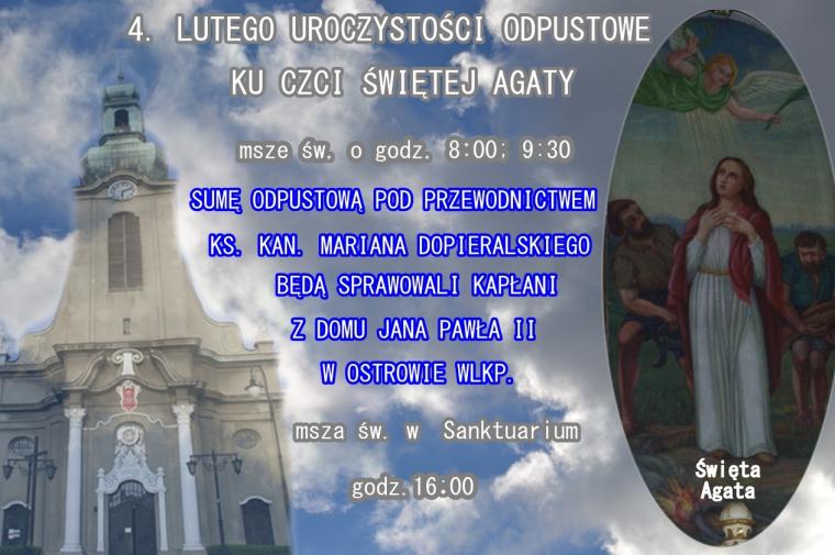 Suma odpustowa zostanie odprawiona 4 lutego o godz. 11:00 w kościele farnym pw. Świętej Trójcy w Mikstacie. Homilie w tym dni będzie wygłaszał KS. KAN. MARIAN DOPIERALSKI