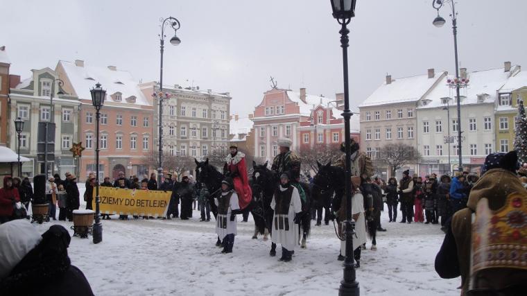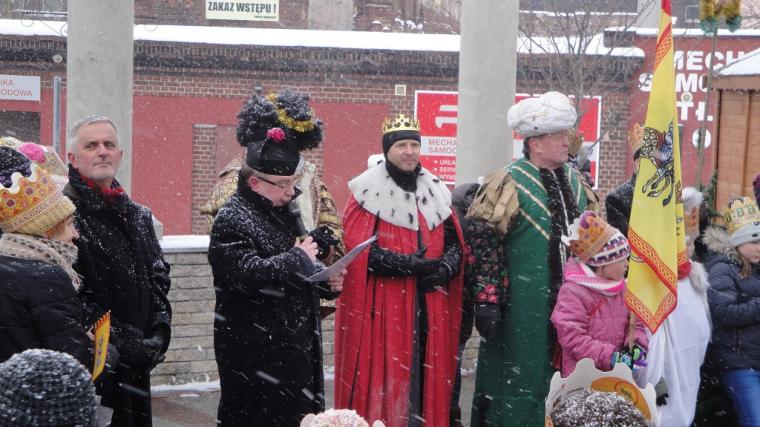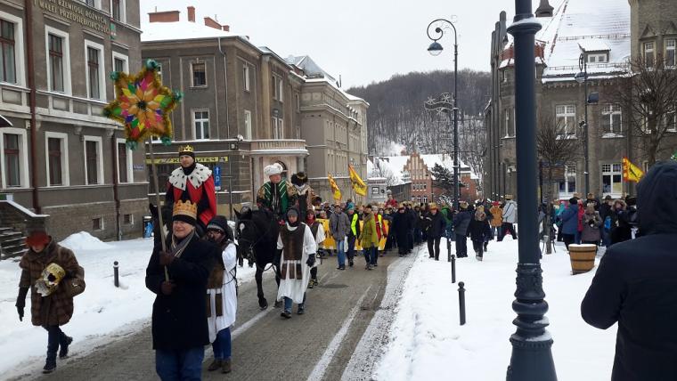 Ulicami Wałbrzycha przemaszerował dziś Orszak Trzech Króli ,organizowany jak co roku przez Fundację Orszak Trzech Króli. Współorganizatorami były władze Wałbrzycha oraz Szczawna Zdroju pod przewodnictwem Prezydenta Miasta Wałbrzycha - dr. Romana Szełemeja, wałbrzyskie parafie, a w szczególności organizacje katolickie, którym przewodniczył ks. prałat dr Krzysztof Moszumański, proboszcz parafii p.w. Niepokalanego Poczęcia NMP w Wałbrzychu. Wydarzenie rozpoczęło się o godz. 11.00 Mszą św. w parafii św. Aniołów Stróżów. Po Eucharystii przy kolegiacie uformował się orszak, który prowadzili siedzący na koniach trzej królowie: Kacper, Baltazar oraz Melchior. Orszak zatrzymał się u Heroda, który przywitał ich na wałbrzyskim Rynku. Scenka ta została odtworzona przez Prywatne Gimnazjum i Liceum Sióstr Niepokalanek w Wałbrzychu. Z Rynku trzej królowie wspólnie ze swoim orszakiem udali się do Miejskiego Ratusza, gdzie odbył się na ich cześć program wizualno-muzyczny, zorganizowany przez gimnazjum im. Korczaka w Wałbrzychu. Przemierzając ulice miasta orszak dotarł do swojego celu, tzn. do szopki Betlejemskiej. Odnalazł tam nowo narodzone dziecko z Matką Najświętszą oraz św. Józefem . Trzej królowie pokłonili się św. Rodzinie oraz wręczyli dary. Hołd, jaki złożyli Mędrcy ze Wschodu, jest znakiem, że i poganie zostali powołani do przyjęcia wiary. Część oficjalną wydarzenia zakończyły podziękowania ,złożone przez ks. prałata Krzysztofa Moszumańskiego wszystkim tym, którzy swoim zaangażowaniem przyczynili się do wspaniałej oprawy tego przedsięwzięcia. Lista była długa: począwszy od władz Wałbrzycha, Szczawna Zdroju, poprzez stadninę koni Książ, Teatr Dramatyczny im. Jerzego Szaniawskiego w Wałbrzychu, organizacji katolickich, szkół. Słowa podziękowania złożył dr Roman Szełemej, który wykorzystał tę okazję do wręczenia nagrody laureatom konkursu na najpiękniejszą szopkę Bożonarodzeniową. Około godziny 13.00 ks. prałat pobłogosławił licznie zebrane osoby. Po części oficjalnej piosenka Arki Noego "Świeć, gwiazdeczko, świeć" rozpoczęła wspólne radosne świętowanie poprzez śpiew wydarzenia przybycia trzech króli do szopki Betlejemskiej. Ulicami Wałbrzycha przemaszerował dziś Orszak Trzech Króli ,organizowany jak co roku przez Fundację Orszak Trzech Króli. Współorganizatorami były władze Wałbrzycha oraz Szczawna Zdroju pod przewodnictwem Prezydenta Miasta Wałbrzycha - dr. Romana Szełemeja, wałbrzyskie parafie, a w szczególności organizacje katolickie, którym przewodniczył ks. prałat dr Krzysztof Moszumański, proboszcz parafii p.w. Niepokalanego Poczęcia NMP w Wałbrzychu. Wydarzenie rozpoczęło się o godz. 11.00 Mszą św. w parafii św. Aniołów Stróżów. Po Eucharystii przy kolegiacie uformował się orszak, który prowadzili siedzący na koniach trzej królowie: Kacper, Baltazar oraz Melchior. Orszak zatrzymał się u Heroda, który przywitał ich na wałbrzyskim Rynku. Scenka ta została odtworzona przez Prywatne Gimnazjum i Liceum Sióstr Niepokalanek w Wałbrzychu. Z Rynku trzej królowie wspólnie ze swoim orszakiem udali się do Miejskiego Ratusza, gdzie odbył się na ich cześć program wizualno-muzyczny, zorganizowany przez gimnazjum im. Korczaka w Wałbrzychu. Przemierzając ulice miasta orszak dotarł do swojego celu, tzn. do szopki Betlejemskiej. Odnalazł tam nowo narodzone dziecko z Matką Najświętszą oraz św. Józefem . Trzej królowie pokłonili się św. Rodzinie oraz wręczyli dary. Hołd, jaki złożyli Mędrcy ze Wschodu, jest znakiem, że i poganie zostali powołani do przyjęcia wiary. Część oficjalną wydarzenia zakończyły podziękowania ,złożone przez ks. prałata Krzysztofa Moszumańskiego wszystkim tym, którzy swoim zaangażowaniem przyczynili się do wspaniałej oprawy tego przedsięwzięcia. Lista była długa: począwszy od władz Wałbrzycha, Szczawna Zdroju, poprzez stadninę koni Książ, Teatr Dramatyczny im. Jerzego Szaniawskiego w Wałbrzychu, organizacji katolickich, szkół. Słowa podziękowania złożył dr Roman Szełemej, który wykorzystał tę okazję do wręczenia nagrody laureatom konkursu na najpiękniejszą szopkę Bożonarodzeniową. Około godziny 13.00 ks. prałat pobłogosławił licznie zebrane osoby. Po części oficjalnej piosenka Arki Noego "Świeć, gwiazdeczko, świeć" rozpoczęła wspólne radosne świętowanie poprzez śpiew wydarzenia przybycia trzech króli do szopki Betlejemskiej.