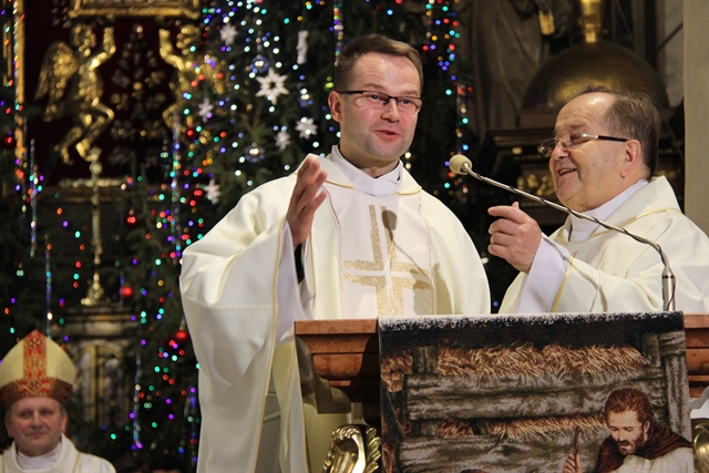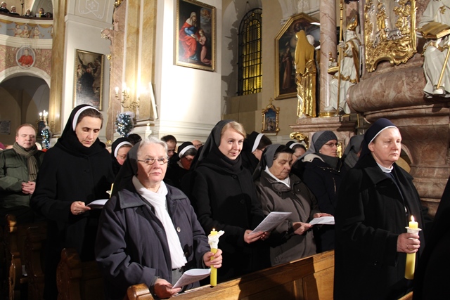 Mszy św. przewodniczył bp Mirosław Milewski, biskup pomocniczy diecezji płockiej. Wraz z nim modlili się: biskup kaliski Edward Janiak, biskup pomocniczy Łukasz Buzun, bp senior Stanisław Napierała, bp senior Teofil Wilski, o. Tadeusz Rydzyk, kilkudziesięciu kapłanów, wierni z diecezji kaliskiej, a szczególnie dekanatów kaliskiego pierwszego, ostrowskiego pierwszego i opatóweckiego oraz osoby konsekrowane z diecezji kaliskiej i pielgrzymi z całej Polski. W homilii bp Milewski dziękował osobom konsekrowanym za gorliwą służbę w Kościele. - Dziś dziękujemy tym zastępom Waszych współbraci i Was za świadectwo życia zakonnego. Nie byłoby roku 1918, ale też nie byłoby roku 1989, gdyby nie Wasza mrówcza, mozolna, ukryta, a nierzadko szykanowana przez władze PRL praca u podstaw, z najbardziej tego potrzebującymi. W dzieło misji prorockiej wpisały się przez wiele wieków dziesiątki tysięcy zakonników, idących z posługą słowa. Od pierwszych benedyktynów, którzy przynieśli tak wielu z naszych przodków chrzest, przez franciszkanów i dominikanów, tłumaczących zawiłości wiary, jezuitów i redemptorystów – mistrzów słowa i jego przekazu, aż po salezjanów, pracujących cierpliwie z młodzieżą – podkreślał hierarcha. Wskazywał też na rolę, jaką w Polsce odgrywają media katolickie, szczególnie Radio Maryja i Telewizja Trwam. - O ile trudniej byłoby dzisiaj w Polsce mówić o Bogu i Jego Kościele, gdyby nie wkład tych właśnie mediów w tak bardzo zróżnicowany polski rynek radiowo-telewizyjny. O ile trudniej żyłoby się milionom Polaków, starszych i młodszych, pracujących i emerytów, gdyby nie wspólna modlitwa na tych antenach, katechezy, dyskusje, rozmowy niedokończone. O ile trudniej byłoby zrozumieć polską rzeczywistość, gdyby nie te – czasami bardzo wyraźne – znaki sprzeciwu – powiedział biskup pomocniczy diecezji płockiej. Zachęcał wiernych, aby prosili Boga o światło dla siebie i swoich najbliższych. - Z gromnicami w ręku, jak nasi ojcowie, przychodzimy w to dzisiejsze święto, aby prosić Boga o światło. Potrzebują tego światła nasze rodziny, tak bardzo zranione różnymi bolesnymi sytuacjami: brakiem dzieci, chorobami, rozwodami, zazdrością. Potrzebują go nasze szkoły, zwłaszcza katolickie, w dobie reorganizacji, by były miejscem wychowania i zdobywania wiedzy – zaznaczył celebrans. Prosił też o światło dla wspólnot diecezjalnych, parafialnych i lokalnych. - Potrzebują tego światła nasze parafie i diecezje, a zwłaszcza seminaria duchowne i nowicjaty zakonne, gdzie czasem płomień zapału przygasa i woła o nowych, młodych, którzy wezmą do ręki tę pochodnię Kościoła. Potrzebują tego światła nasze lokalne wspólnoty, nasze „małe ojczyzny”, bo czasem nazbyt mocno zapanowały tam ciemności. Potrzebują tego światła katolickie media, by jego blask zadziwiał ludzi i przyciągał do wiary i zaufania Bogu. Potrzebuje tego światła każdy z nas, by „światłość w ciemności świeciła i ciemności jej nie ogarnęły” – mówił bp Milewski.