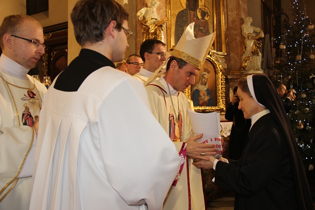 Po kazaniu osoby konsekrowane odnowiły śluby zakonne, a przed zakończeniem Mszy św. biskupi, kapłani i wierni zebrani w kaliskiej bazylice zawierzyli św. Józefowi wspólnoty zakonne. W swoim przemówieniu biskup kaliski podziękował osobom konsekrowanym za posługę w diecezji kaliskiej. – Bogu dziękuję za to, że mogę pracować w takim Kościele, gdzie tyle inicjatywy, tyle charyzmatów, tyle talentów i my na co dzień z tego korzystamy. Otrzymane talenty i zdolności wspólnoty zakonne wykorzystują do codziennej służby człowiekowi, a nie ma innej drogi do Pana Boga jak poprzez drugiego człowieka – powiedział bp Edward Janiak. Podczas Mszy św. śpiewał Chór Sióstr Nazaretanek pod dyrekcją s. dr Karen Trafankowskiej, nazaretanki. Spotkanie transmitowane było przez Telewizję Trwam, Radio Maryja i Diecezjalne Radio Rodzina.