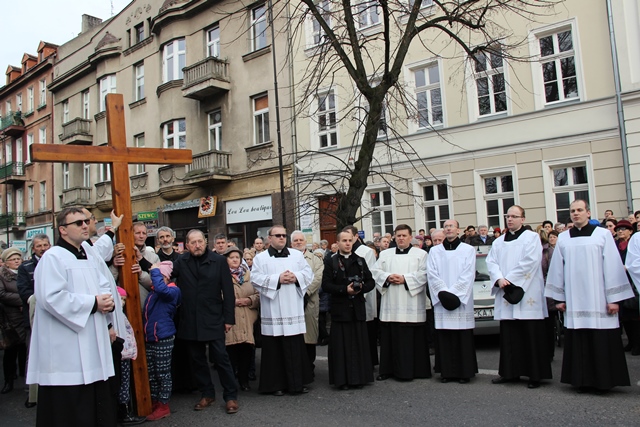 Rozważania do stacji drogi krzyżowej przygotował o. jezuita Józef Augustyn, a odczytał je Jacek Majewski. Drodze krzyżowej towarzyszył śpiew pieśni wielkopostnych i koronki do Miłosierdzia Bożego.