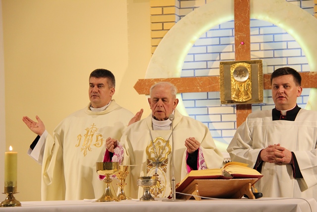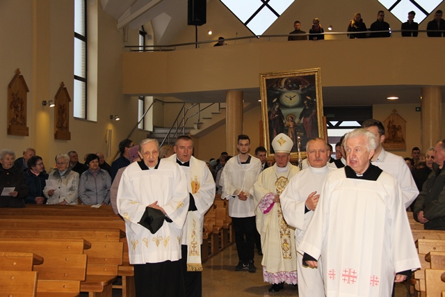 W homilii bp Stanisław Napierała przypomniał, że kopia obrazu św. Józefa Kaliskiego pobłogosławiona przez Jana Pawła II w Rzymie przemierzyła całą diecezję kaliską na początku jej istnienia. – Wszędzie św. Józef był przyjmowany po królewsku i zobaczyliśmy, że w każdej części diecezji ludzie kochają św. Józefa. Witali Go z miłością i wielką wiarą. I tak św. Józef rozpoczął scalanie naszej diecezji. Minęło już ponad 20 lat. W tym czasie powstały nowe parafie, a wśród nich Wasza parafia Matki Bożej Różańcowej, do której dzisiaj przybył św. Józef – powiedział celebrans.