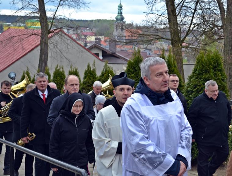 Mają Krakowianie znany chyba w całej Polsce, gromadzący tysiące wiernych odpust Emaus. Niewiele osób natomiast zapewne wie, że w niewielkiej miejscowości Mikstat( diecezja kaliska) co roku parafianie w Uroczystość Zmartwychwstania Pańskiego wyruszają w drogę do Emaus. Nie oznacza to jednak, że pielgrzymują w tym szczególnym czasie do Ziemi Świętej, chociaż zapewne wielu nosi w swym sercu pragnienie przeżycia tych dni właśnie tam. Mikstackie Emaus to procesja, która od stuleci odbywa się w tej miejscowości i prowadzi z kościoła farnego do Diecezjalnego Sanktuarium Świętego Rocha na wzgórzu za miastem. Jest znacznie krótsza niż ta, w którą wyruszyli uczniowie Jezusa z Jerozolimy do Emaus. Oni mieli do przebycia około 12 km, my około 1km. Jest jednak dla mikstackiej wspólnoty bardzo ważna, bo z jednej strony stanowi okazję do dania świadectwa wiary w zmartwychwstanie Jezusa Chrystusa, jest kontynuacją tradycji przodków, ale także czasem refleksji nad sensem życia nad tym, dokąd zmierzamy. Tradycyjnie, mikstaccy parafianie zebrali się w kościele farnym, by wyruszyć w procesji do Emaus. Ponieważ parafianie przygotowują się do Święta Miłosierdzia Bożego poprzez udział w nowennie, odmówiona została Koronka do Miłosierdzia Bożego. Następnie z paschałem, figurą Chrystusa zmartwychwstałego, z chorągwiami i feretronami wyruszyliśmy w kierunki Sanktuarium. W procesji obok kapłanów posługujących w naszej parafii ks. kan. Krzysztofem Ordziniakiem, ks. Krzysztofem Lipińskim uczestniczyli także ks. Ryszard Zieliński i ks. Mateusz Puchała. W rytm dźwięków w wykonaniu naszej parafialnej orkiestry pokonywaliśmy naszą drogę. Sanktuarium położone jest w centralnym punkcie cmentarza. Tu wielu uczestników procesji ma groby swoich bliskich. Dla nich przesłanie: Pan zmartwychwstał! nabiera tu szczególnego znaczenia. Daje nadzieję na spotkanie z tymi, którzy poprzedzili nas w pielgrzymce do Ojczyzny niebieskiej. W Uroczystość Zmartwychwstania Pańskiego orkiestra obchodzi rocznicę powstania. Warto dodać, że już 47. Stało się tradycją, że po dotarciu przed Sanktuarium uczestnicy mikstackiej procesji do Emaus zatrzymują się przy grobie założyciela orkiestry ks. kan. Bernarda Langkaua oraz jego następcy ks. kan. Kazimierza Mądrego na chwilę modlitwy. Modlitwie przy grobach kapłanów przewodniczył ks. kan. Krzysztof Ordziniak. Członkowie orkiestry złożyli w tym czasie znicze. Następnie w Sanktuarium odprawione zostały uroczyste nieszpory podczas których odczytana została Ewangelia mówiąca o uczniach zmierzających do Emaus. Słowa rozważania skierował do zebranych ks. Krzysztof Lipiński. Myślą przewodnią rozważania były słowa skierowane przez uczniów do Jezusa „ Ty jesteś chyba jedynym, który nie wie co w tych dniach wydarzyła się w Jeruzalem”. Kaznodzieje podkreślił, że opuszczenie Jezusa przez wszystkich. Jak podkreślił tak wielu było świadków czynionych przez niego znaków, cudów, a mimo to w nie zrobili niczego, gdy Jezus był krzyżowany. Ks. Krzysztof zaakcentował, że mimo tego Jezus nie odwrócił się ze swoją miłością od człowieka. Podkreślił, że także nam często wydaje się, że wiemy najlepiej jak powinno wyglądać nasze życie. To czego, jak wskazał kaznodzieja, najbardziej w życiu potrzebujemy to obecności Pana Jezusa. Tylko Jezus jest tym, który potrafi dać odpowiedź na wszystkie nasze pytania, a tych pytań jest w naszym życiu bardzo wiele kontynuował kaznodzieja. Postawą swego życia mówimy wielokrotnie „ Panie Boże, Ty się na tym nie znasz bo jak byś się znał, to by było inaczej” stwierdził ks. Krzysztof. Zaapelował do zebranych, by nie próbowali nigdy sami udzielać sobie odpowiedzi, wyjaśniać trudnych, niezrozumiałych spraw sami. Podkreślił, że Jezus jest obok nas, jest w nas, ale my możemy go nie dostrzeć. Kaznodzieja zachęcał do słuchania Boga. Wskazał, że uczniowie byli przy Jezusie, widzieli znaki, cuda, słuchali Jego słów, ale dopiero spotkanie ze Zmartwychwstałym Chrystusem sprawia, że ich wiara staje się wiarą żywą. Kaznodzieja zachęcając do refleksji, dlaczego Święta Zmartwychwstania są tak ważne powiedział: „ Te święta są okazją do tego, aby jeśli ktoś doświadczył tego, że Jezus jest naprawdę Bogiem żywym, to żeby swoją wiarę umocnił, jeszcze bardziej ją ożywił. A jeśli czasami w naszym życiu wiara jest ospała, przygaszona to jest to okazja do tego, żeby się ożywiła, a wraz z tą żywą wiarą zobaczymy, że Pan Bóg ukazuje nam odpowiedzi na wszystkie pytania naszego życia” .Ważne jest jednak podkreślił kaznodzieja byśmy chcieli tych odpowiedzi słuchać. Kończąc rozważanie ks. wikariusz wskazał: „ Jezus pokazał swym uczniom, że On dokładnie wiedział, co się tam w Jerozolimie wydarzyło, bo to on był właśnie w centrum tego wydarzenia. Pan przygotował dla nas stół, wielu skorzystało z tego zaproszenia. Mikstacka droga do Emaus A. D. 2017 była kolejną okazją do realizacji hasła roku duszpasterskiego „ Idźcie i głoście”. Szli i głosili napotykanym ludziom mikstaccy parafianie: Jezus żyje, zmartwychwstał, prawdziwie zmartwychwstał!