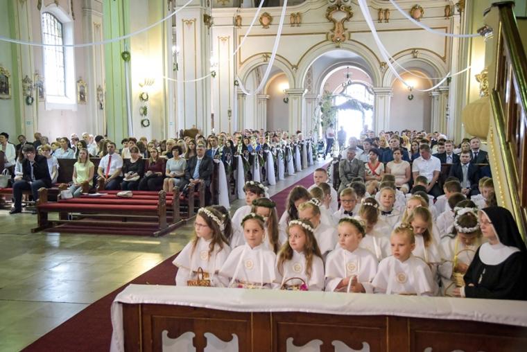 W dzień uroczystości Trójcy Świętej podczas Mszy Świętej sprawowanej o godz. 9:30 rocznicę I Komunii Świętej przeżywały dzieci uczęszczające do klasy IV.