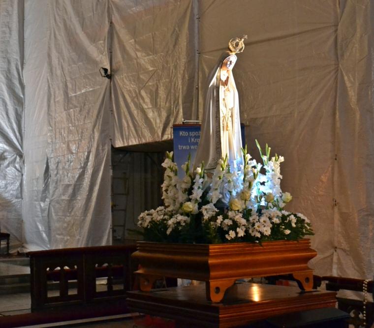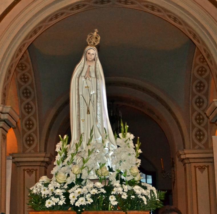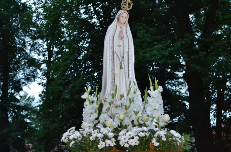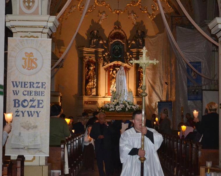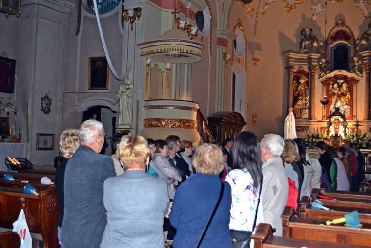 „ My zgromadzeni na nabożeństwie fatimskim odmawiamy różaniec, śpiewamy pieśni maryjne, prosimy Maryję o wstawiennictwo u Trójjedynego Boga we wszystkich naszych potrzebach. Tym samym jesteśmy wspólnotą, której celem jest sam Bóg”- powiedział do wiernych ks. kan. Krzysztof Ordzianiak
