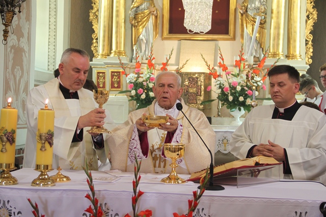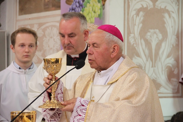 Prosił wiernych, aby przystępowali do komunii św. – „Kto spożywa moje Ciało i pije moją Krew ma życie wieczne”. Trzeba uwierzyć Jezusowi, trzeba przystępować do tej uczty, którą Pan Jezus zastawia, a której pokarmem jest On sam. Trzeba przyjmować Jego Ciało i pić Jego Krew, żeby mieć życie wieczne, bo to jest życie, którym żyje Bóg. Bóg nigdy nie umiera. Do Niego nie ma przystępu śmierć, cierpienie, smutek, ból. On jest życiem, On jest pełnią życia. Kto spożywa Ciało i pije Krew Chrystusa otrzymuje udział w życiu, którym żyje Bóg – powiedział bp Napierała.