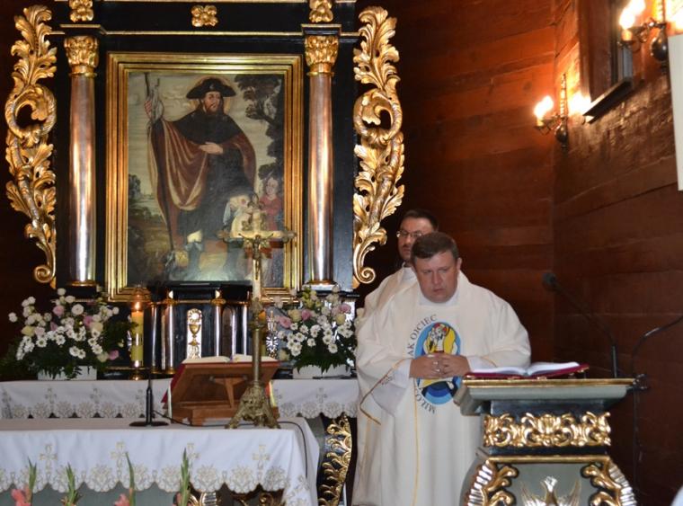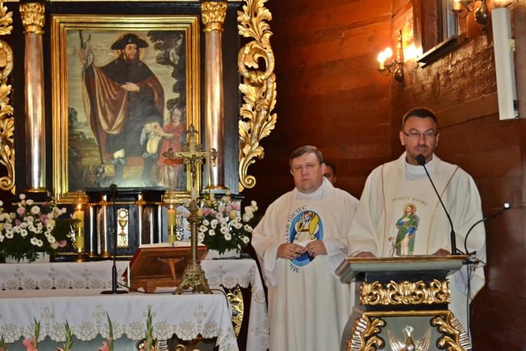 O godz. 18:30 ks. kan. Bogumił Kempa, ks. kan. Krzysztof Ordziniak, ks. Krzysztof Lipiński sprawowali w sanktuarium Eucharystię połączoną z Nowenną. Zgromadzeni wierni mogli wysłuchać piątej już nauki rekolekcyjnej, która wygłosił ks. kan. Bogumił. Na początku kaznodzieja zwrócił naszą uwagą na fakt, że w tym nowennowym czasie Kościół wspomina każdego dnia postacie Świętych. Podkreślił, że są to postacie, które patrząc po ludzku nie dokonały niczego nadzwyczajnego, ale zostały wybrane przez Pana Boga. Jak podkreślił kaznodzieja, były to osoby żyjące Ewangelią, które nie bały się wziąć krzyża, nie bały się zaprzeć samych siebie. Zwrócił uwagę, że człowiekowi wydaje się, że wiara ma nam zagwarantować nam życie łatwe, miłe, przyjemne. Jezus nigdy nam takiego życia nie obiecywał. Taka postawa wobec wiary, wobec Boga może prowadzić do jej utraty, odrzucenia w chwilach trudnych doświadczeń. O powołaniu do świętości mówił dalej ks. kan. Bogumił: „ Świętość osiąga się wtedy kiedy bierze się krzyż. Jezus nigdy nie mówił, że świętym zostanie człowiek, którego życie będzie miłe, łatwe, przyjemne, który będzie codziennie doświadczał Bożego błogosławieństwa- Jeśli kto chce iść za mną, niech się zaprze samego siebie, niech weźmie swój krzyż i niech Mnie naśladuje. Wybranie przez Chrystusa zawsze łączy się z krzyżem. Kaznodzieja przybliżył postać św. Klary, akcentując, że dla niej, podobnie jak i dla św. Rocha Chrystus był kimś autentycznym, kimś dla kogo zaparli się samych siebie, dla kogo brali swój krzyż.