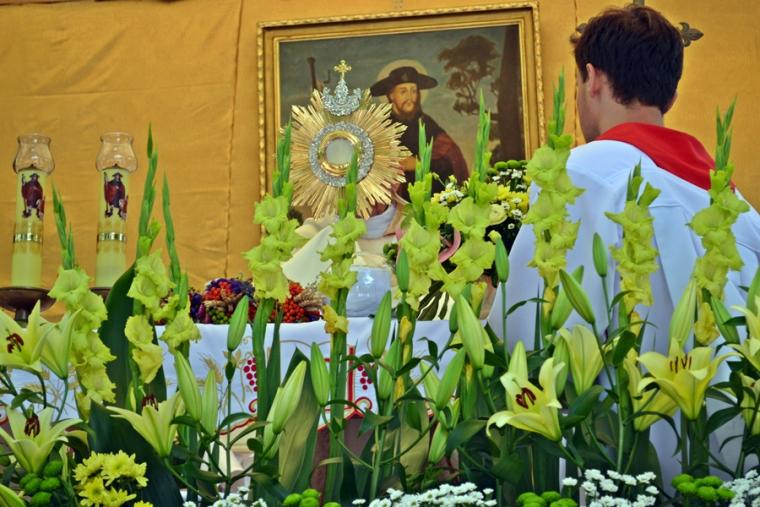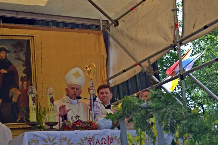 Uroczystej sumie odpustowej sprawowanej o godz. 11:00 przewodniczył ks. bp Senior Stanisław Napierała. Wcześniej bp Senior dokonał obrzędu błogosławieństwa zwierząt, który stanowi nierozłączny element uroczystości odpustowych ku czci św. Rocha w Mikstacie. Na początku Eucharystii ks. kan. Krzysztof Ordziniak, kustosz Diecezjalnego Sanktuarium Świętego Rocha w Mikstacie skierował słowa podziękowania za przybycie na uroczystości odpustowe do ks. Biskupa Stanisława Napierały. Wyraził radość z obecności ks. biskupa wśród nas. Ks. kustosz przywitał kapłanów, przedstawicieli władz, pielgrzymów, parafian. Poprosił następnie ks. Bpa, by sprawował tę sumę w intencji wszystkich pielgrzymujących na uroczystości odpustowe.