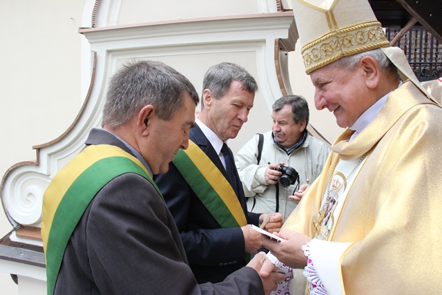 Bp Edward Janiak przewodniczył uroczystej Mszy św. dziękczynnej za tegoroczne plony w Skalmierzycach. Przed Eucharystią bp Janiak poświęcił i obejrzał wieńce dożynkowe przywiezione przez delegacje rolników z trzydziestu trzech dekanatów diecezji kaliskiej i sołectw z gminy Nowe Skalmierzyce. Biskup podziwiał trud pracy, który rolnicy włożyli w przygotowanie wieńców.