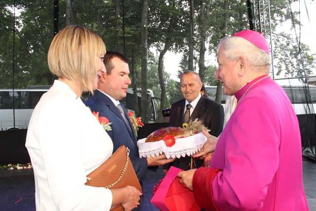 Dziękował rolnikom za ich trud pracy na roli. – Drodzy rolnicy tu obecni, przyjmijcie od nas dziś nasze podziękowanie za wasz trud, za wasze poświęcenie. Was dzisiaj w szczególny sposób polecamy opiece dobrego Boga. Za waszą troskę o chleb powszedni naród jest wam wdzięczny – podkreślił hierarcha.