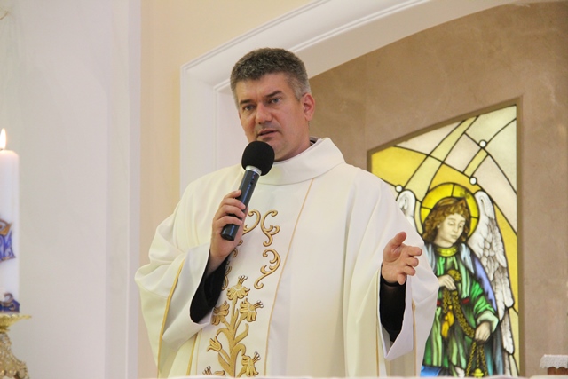 Witając biskupa, kapłanów i wiernych ks. Robert Lewandowski podkreślał, że ta świątynia została wybudowana trudem wielu ludzi. Dodał, że nie byłoby jej, gdyby nie charyzmatyczna postawa i szlachetne kapłańskie życie ks. prał. Józefa Sieradzana, który latach 80. odkrył potrzebę stworzenia w tym miejscu ośrodka duszpasterskiego, a potem parafii.