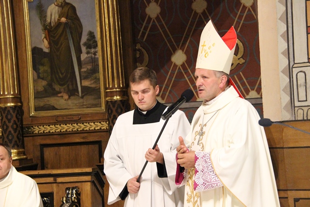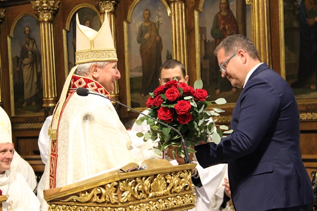 Prosił wiernych o modlitwę w intencji powołań kapłańskich. – Nie sposób, obchodząc 5. rocznicę ingresu biskupa tu, w tej katedrze, która jest nie tylko matką wszystkich kościołów w diecezji, ale także miejscem rodzenia się nowych kapłanów, nie wznieść do Pana pełnej błagania modlitwy o nowe powołania do kapłańskiej posługi. Myślę, że najpiękniejszym darem dla naszego biskupa, będzie podjęcie dziś przy wieczornym pacierzu dziesiątki różańca w intencji powołań w naszej diecezji – mówił kapłan.