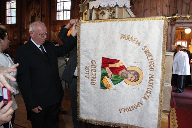 Biskup kaliski poświęcił nowy sztandar ufundowany dla parafii przez jubilatkę oraz tablicę upamiętniającą jubileusz 25-lecia istnienia diecezji kaliskiej.