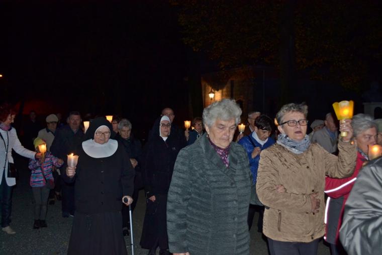 Po zakończeniu modlitwy różańcowej za krzyżem i figurą Matki Boże Fatimskiej ze śpiewem na ustach, z płonącymi lampionami wyruszyliśmy w procesji wokół kościoła. Po powrocie procesji do kościoła w łączności duchowej z Jasną Górą zaśpiewaliśmy Apel Jasnogórski. Ku niebu popłynęły słowa: Maryjo: jestem, pamiętam, czuwam.