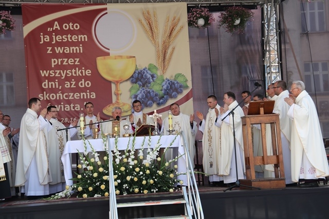 Po zakończeniu procesji Mszy św. na rynku przewodniczył bp Edward Janiak, w asyście księży neoprezbiterów i licznie zgromadzonych kapłanów.