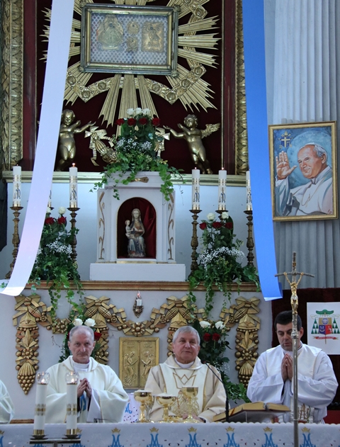 Zachęcał wiernych, aby pocieszali bliźnich przeżywających kłopoty. – Maryja przypomina nam, że my powinniśmy wzajemnie pocieszać się. Mamy podnosić innych na duchu, pocieszać ludzi samotnych, załamanych, cierpiących. Nieraz jedno dobre słowo i uśmiech więcej znaczą niż pieniądze. Tym, dla których jesteśmy postawieni na drodze życia nie żałujmy dobrego słowa. Uśmiech i życzliwość są dzisiaj bardzo potrzebne – przekonywał bp Janiak.