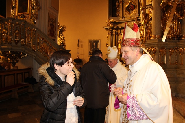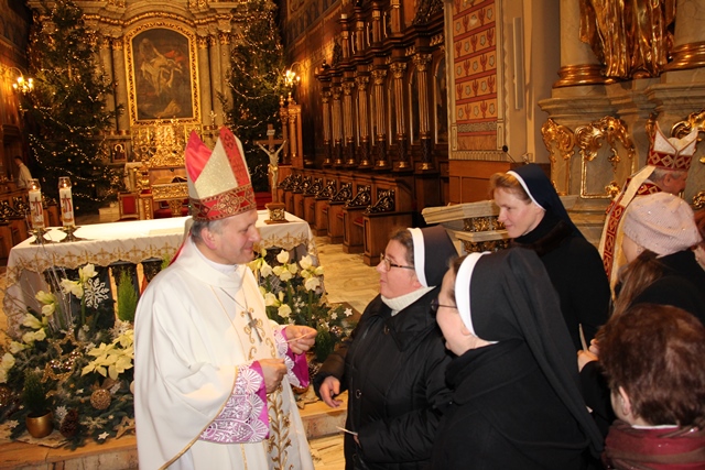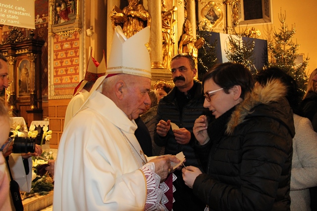 Po Mszy św. biskupi przełamali się opłatkiem z wiernymi. Uroczystość uświetniła orkiestra „Gród nad Prosną” i chór „Canticum”.