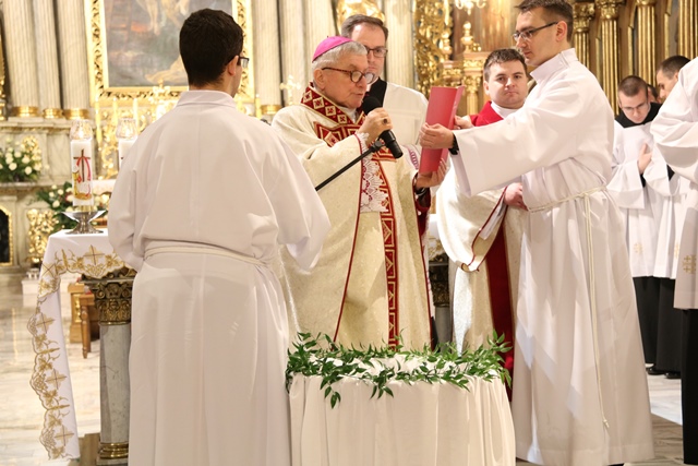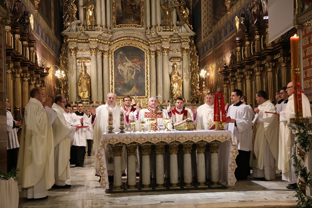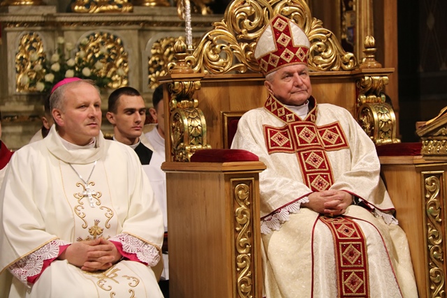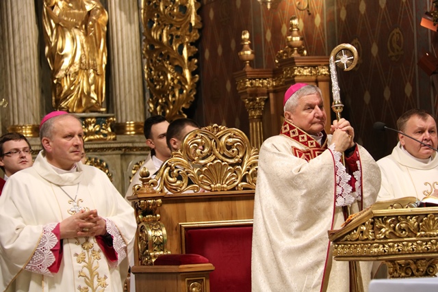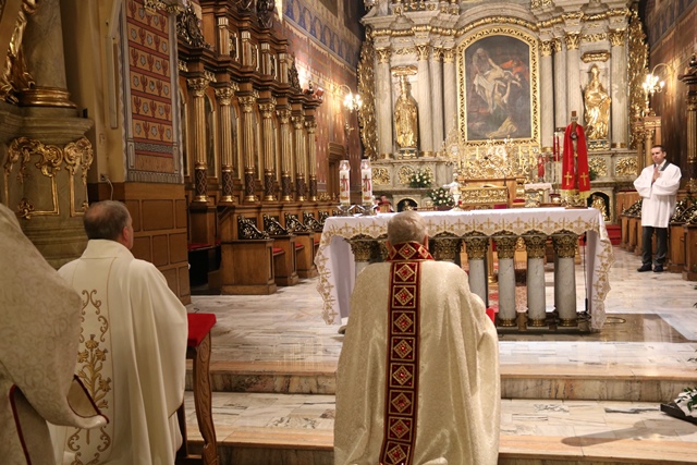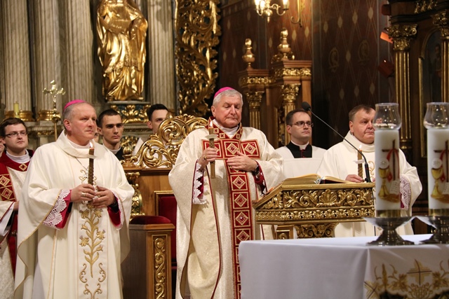 Wraz z biskupem kaliskim Edwardem Janiakiem modlili się: biskup pomocniczy diecezji kaliskiej Łukasz Buzun, proboszcz katedry ks. prał. Adam Modliński, kapłani pracujący w Kurii Diecezjalnej i katedrze.