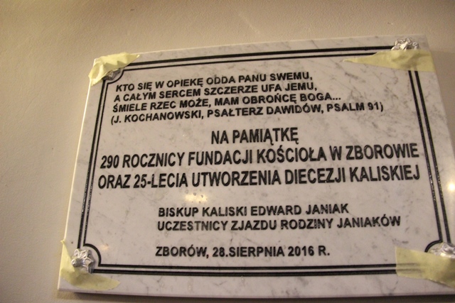 Biskup poświęcił tablicę upamiętniającą 290. rocznicę fundacji kościoła w Zborowie i 25. rocznicę utworzenia diecezji kaliskiej.