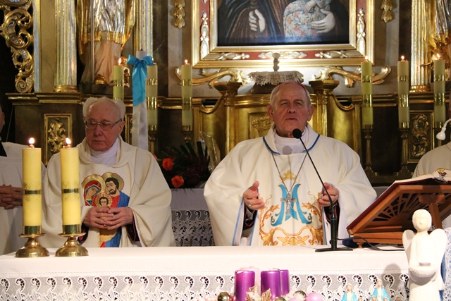 Dziękował parafianom, że w 100. rocznicę odzyskania przez Polskę niepodległości postawili w przestrzeni publicznej kapliczkę św. Michała Archanioła, patrona parafii. - Nasza ojczyzna jest też dotknięta złem. Ile jest zła, chaosu, zamętu pojęciowego, ludzie są zagubieni. Ile można by zrobić dobra w Polsce, gdyby Polacy w sprawach istotnych i ważnych dla ojczyzny jednoczyli się, a tutaj codziennie większa walka, codziennie większa nienawiść. Niech w przestrzeni waszej parafii będzie zwycięstwo nad złem. Wy jako wspólnota parafialna pod wodzą Maryi Niepokalanej i św. Michała Archanioła zmierzcie się ze złem. Umiejcie zjednoczyć się, jeżeli chodzi o dobro wspólne – powiedział biskup kaliski senior.
