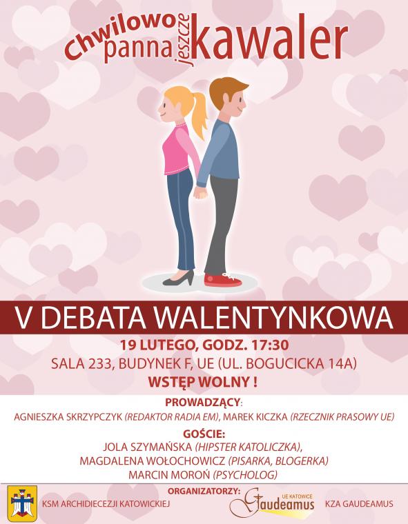 Debata odbędzie się 19 lutego (poniedziałek) o godz. 17.30 w sali 233 Uniwersytetu Ekonomicznego w Katowicach (budynek F, ul. Bogucicka 14a). To wydarzenie otwarte, udział w nim jest bezpłatny. Organizatorem jest Katolickie Stowarzyszenie Młodzieży Archidiecezji Katowickiej, przy współpracy KZA Gaudeamus.
