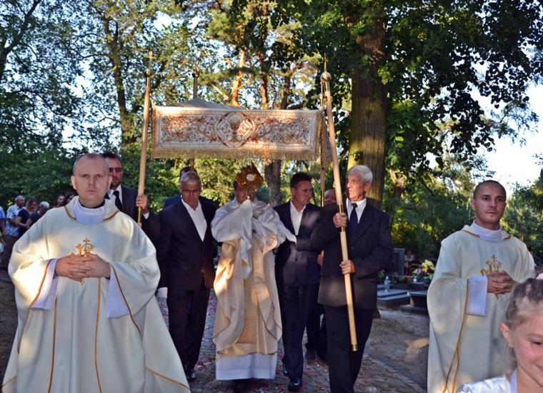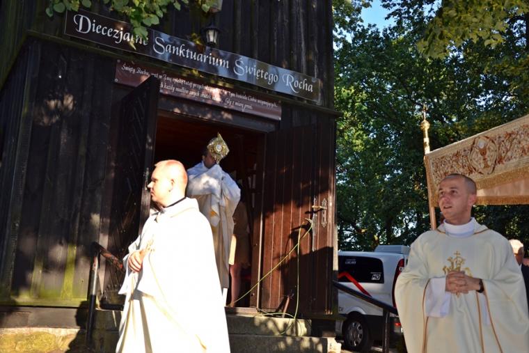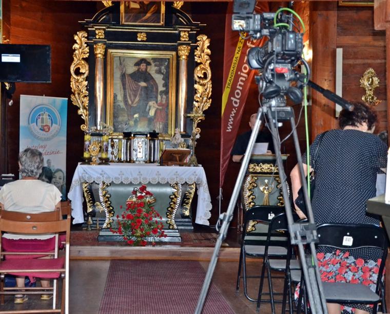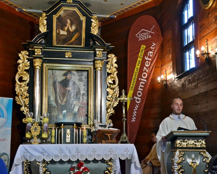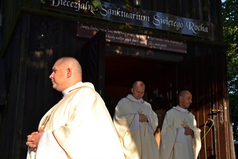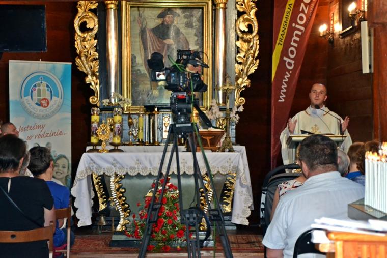 Przed zakończeniem Eucharystii Ksiądz Mateusz, Dyrektor Diecezjalnego Radia Rodzina  i Telewizji Internetowej Dom Józefa zachęcał uczestników modlitewnego spotkania zarówno tych zgromadzonych w sanktuarium i wokół niego, jak i łączących się z nami duchowo dzięki transmisji do korzystania z dostępnych mediów. Wielu z nas jest wiernymi słuchaczami audycji Radia Rodzina i widzami programów TV Dom  Józefa,  ale mamy nadzieją, że  radiowo- telewizyjna transmisja przyczyni się do powiększenia grona słuchaczy i widzów. Naprawdę warto, bo propozycji audycji radiowych i telewizyjnych jest wiele i są bardzo  różnorodne. Każdy może w nich znaleźć coś dla siebie. Ponadto ks. Mateusz przybliżył słuchaczom i widzom postać św. Rocha i specyfikę mikstackiego sanktuarium. Zwrócił uwagę, że dzięki transmisjom różnych uroczystości mamy okazję poznawać piękne kościoły i sanktuaria znajdujące się na terenie naszej diecezji.
