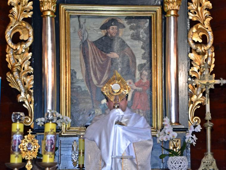 Przy wystawionym Najświętszym Sakramencie zostało odprawione nabożeństwo do św. Rocha. Odbywa się ono w Diecezjalnym Sanktuarium Świętego Rocha w każdy poniedziałek. Tym razem uczestniczyli w nim nie tylko mikstaccy parafianie i pielgrzymi, ale także słuchacze RR i TV Dom Józefa. Może zechcą kiedyś przyjechać do Mikstatu i włączyć się już bezpośrednio w wołanie ku niebu: Święty Rochu, bądź przy nas i wspieraj nas,  w niewielkim rozmiarami, ale wielkim duchem sanktuarium. Po „Rochowym nabożeństwie” odmówiona została  Litania do Najświętszego Serca Jezusowego. Trwamy w okresie tzw. oktawy Bożego Ciała więc po odmówieniu litanii wyruszyliśmy w procesji wokoło sanktuarium. Błogosławieństwo Najświętszym Sakramentem zakończyło modlitewne spotkanie w sanktuarium.Wielu uczestników modlitewnego spotkania uczciło relikwie ,św. Rocha. Wszyscy otrzymali  folder, na którym znajdują się informacje o częstotliwości nadawania Radia Rodzina i adres internetowy TV  DOM JÓZEFA.