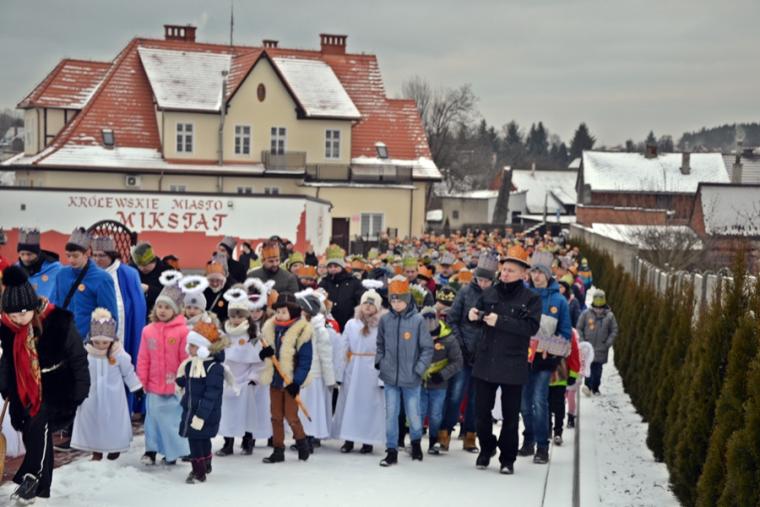 Od kilkunastu lat w uroczystość Objawienia Pańskiego, popularnie nazywaną świętem Trzech Króli na ulicach miast, miasteczek i wiosek odbywają się największe jasełka – Orszak Trzech Króli. W ubiegłym roku przeszedł on po raz pierwszy ulicami Mikstatu, ale co warto podkreślić miał on charakter „ prawie dekanalny”, gdyż uczestniczyli w nim wraz ze swoimi w nim wraz ze swoimi duszpasterzami wierni z parafii z Chynowej, Kaliszkowic Kaliskich, Kotłowa, Przedborowa i oczywiście Mikstatu. Liczny udział wiernych i pozytywne opinie o tym wydarzeniu sprawiły, że było wiadomo, że za rok 6. stycznia 2020 roku zostanie zorganizowany kolejny Orszak Trzech Króli. I będzie … Tegoroczny OTK przebiegać będzie pod hasłem: „Cuda, cuda, ogłaszają…”. Koordynatorem działań związanych z organizacją Orszaku był dziekan dekanatu mikstackiego, ks. kan. Krzysztof Ordziniak. Orszak wyruszy o godz. 14:00 z kościoła farnego pw. Świętej Trójcy w Mikstacie, a zakończy się na parkingu przy Urzędzie Miasta i Gminy. Zatrzyma się na Rynku, gdzie zostanie zaprezentowana scena Heroda przygotowana przez koło teatralne działające przy szkole podstawowej w Mikstacie. Następnie uliczkami miasta będzie zmierzał w kierunku Diecezjalnego Sanktuarium Świętego Rocha. Tu przed bramą główną uczestnicy Orszaku będą mogli zobaczyć scenkę pokłonu Trzech Króli Dzieciątku. Spod bramy prowadzącej do sanktuarium Królewski Orszak skieruje się w kierunku parkingu. Tu będzie można podziwiać jasełka przygotowane przez dzieci z parafii w Chynowej. Jak wspomnieliśmy, mikstacki Orszak ma charakter dekanalny. Chodzi w nim także o to, by poszczególne parafia miały możliwość zaprezentowania się. W ubiegłym roku mogliśmy obejrzeć piękne jasełka przygotowane przez dzieci z Kaliszkowic. W kolejnych latach przyjdzie czas na zaprezentowanie się przez kolejne parafie. Podczas przejścia Orszaku z kościoła farnego na parking będzie sporo czasu, by włączyć się w śpiew tak przez nas lubianych kolęd i pastorałek. Każdy uczestnik otrzyma koronę i śpiewnik. Warto więc już dziś zarezerwować sobie czas na udział w tych niezwykłych jasełkach, w których jesteśmy nie tylko widzami, ale i ich uczestnikami. Udział w jasełkach jest ważnym wydarzeniem religijnym, okazją do wyznania wiary, ale także rodzinnym. Mamy nadzieję, że tak jak w ubiegłym roku w OTK wędrować będą aniołki, pasterze, rycerze. Jak pokazał ubiegłoroczny Orszak uczestniczyły w nim całe rodziny. Stał się on więc okazją do wspólnego, radosnego świętowania. Mikstacki Orszak integruje nie tylko rodziny, ale i parafie należące do dekanatu. Staje się okazją do lepszego poznania się, ale i zaprezentowania własnych osiągnięć. Na parkingu, przy urzędzie będzie czas na dalsze wspólne kolędowanie i gorący posiłek.Będzie też okazja do nawiedzenia niewielkiego rozmiarami, ale wielkiego duchem Diecezjalnego Sanktuarium Świętego Rocha. Tu o godz. 16:00 będzie sprawowana Msza Święta. Do zobaczenia 6. stycznia...