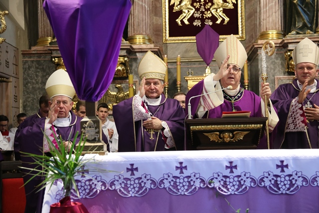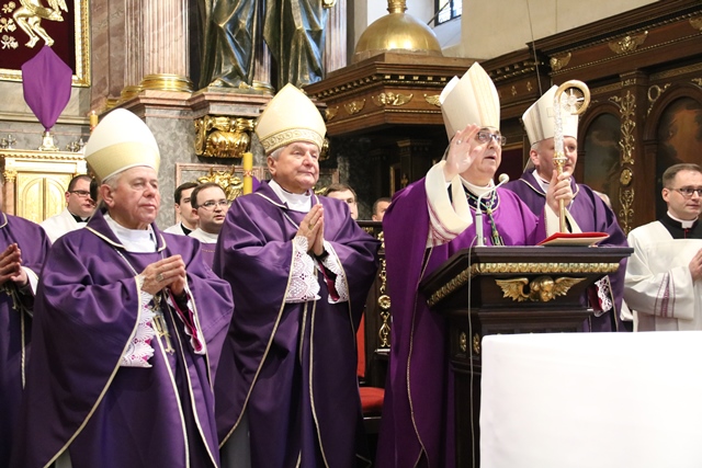 Dodał, że pełną odpowiedzią na słowo Boże jest czyn. - Starajmy się, by słyszane słowo Boże podczas liturgii słowa, rozważania męki Pańskiej, rekolekcji wielkopostnych, nabożeństw paschalnych, było wprowadzane w czyn. Byśmy byli, jak wasz Patron, ludźmi czynu – zachęcał hierarcha.