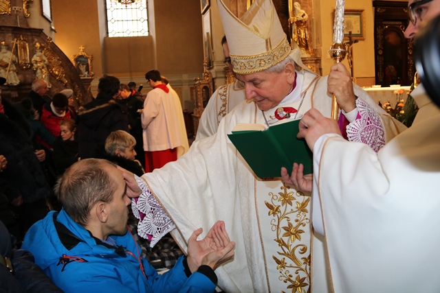 Stwierdził, że cierpienie złączone z krzyżem Chrystusowym nabiera sensu. - Cierpienie jest tajemnicą w życiu człowieka. Nigdy nie mówmy, że ktoś cierpi, bo go Pan Bóg skarał. Nie wiesz czy nie cierpi za mnie, za ciebie. Tylko cierpienie złączone z tajemnicą krzyża nabiera głębokiego sensu, ale my jako ludzie sprawdzamy się w naszej miłości do Boga poprzez wrażliwość na drugiego człowieka – podkreślił bp Janiak.