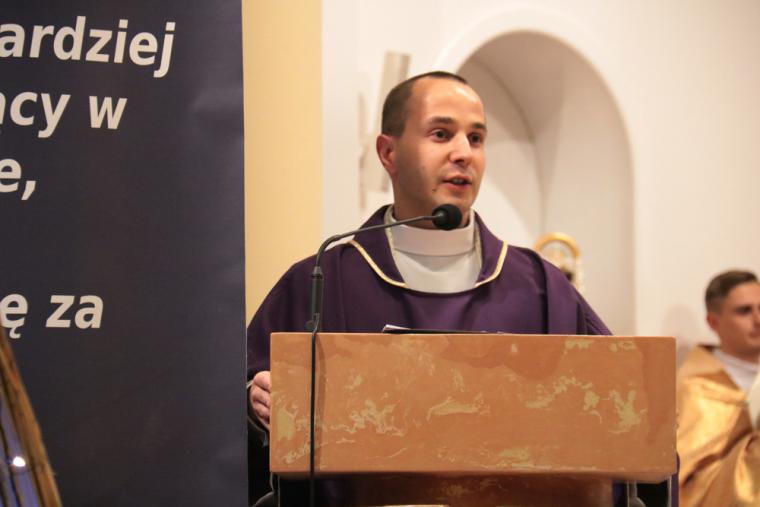 W homilii ks. Mateusz Puchała wskazywał, że postawa Maryi ze sceny zwiastowania jest jedyną rozsądną postawą, jaką może przyjąć człowiek wiary. – Zgoda na wolę Boga powinna wypływać z głębokiego przekonania, że wszystko to, co Bóg dla mnie zaplanował, nawet jeżeli teraz wydaje się bolesne i trudne do zniesienia, to jest z Jego miłości do mnie, bo Pan Bóg wie lepiej co jest dla mnie dobre i co jest mi potrzebne. Maryja dzisiaj uczy nas posłuszeństwa Panu Bogu. Maryja uczy nas przyjmowani Jego woli i rezygnacji z naszych planów – powiedział kaznodzieja. Przekonywał, że chrześcijanin powinien być radosny. – Czasami potrzeba nam radości wiary, która płynie z faktu, że każdy z nas jest wybrany przez Boga, aby otrzymać życie wieczne i takiej radości nie sposób zatrzymać tylko dla siebie. Trzeba iść w świat i dać Jezusa także innym – zaznaczył dyrektora Radia Rodzina Diecezji Kaliskiej i Telewizji Internetowej „Dom Józefa”.