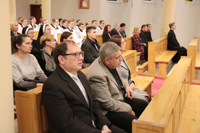 Duchowny życzył diecezji kaliskiej i jej pasterzowi świętych i wiernych kapłanów takich, których posługa będzie rodzić na nowo pragnienie ewangelicznego życia. W imieniu kleryków przemówił alumn Mateusz Paprocki. – Życzę, abyśmy umieli promieniować Nowonarodzonym Chrystusem, aby radość z Bożego Narodzenia objawiła się w naszej codzienności – powiedział kleryk V roku.