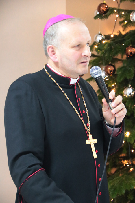 Przed łamaniem się opłatkiem słowo do zgromadzonych skierował biskup kaliski Edward Janiak. – Żyjemy w niełatwych czasach dla Kościoła. Trzeba mieć odwagę, aby być świadkiem i nie wstydzić się wiary. Przez habit i sutannę dajemy świadectwo, ale nieraz też trzeba usłyszeć rzeczy, które nie są miłe dla naszego ucha i to trzeba przyjąć w pokorze – zaznaczył hierarcha. Akcentował, że Pan Bóg przyszedł na świat po to, aby zbawić człowieka. – Człowiek, który nie ma wiary traci nadzieję. Chciałbym życzyć na święta tej perspektywy, nadziei, że wszyscy idziemy w kierunku zmartwychwstania. Życzę, żeby ta wiara nam towarzyszyła we wszystkich czynnościach naszego życia. Zróbmy wszystko, żeby być człowiekiem uczciwym, rzetelnym i żyjącym w prawdzie – mówił bp Janiak.