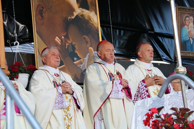 Po koncercie przybyłych na spotkanie pielgrzymów z całej Polski przywitał ks. prałat Jacek Plota, kustosz Narodowego Sanktuarium św. Józefa, który zaznaczył, że kaliskie sanktuarium poprzez trwające nieprzerwanie od 14-tu lat pierwszo-czwartkowe spotkania modlitewne w intencji rodzin i obrony poczętego życia staje się miejscem duchowej odnowy, żarliwej modlitwy oraz miejscem szczególnej formacji i refleksji nad problematyką obrony życia i rodziny w różnych jej aspektach. - Chcemy w ten sposób realizować testament przekazany nam przez św. Jana Pawła II tu w Kaliszu 4 czerwca 1997 r., który brzmi: „Bracia i siostry nigdy nie zapominajcie o tym jak wielką wartością jest rodzina /…/ która jest wspólnotą życia i miłości.” Pragniemy także odpowiedzieć na apel papieża Franciszka, który na zakończenie IX-go Światowego Spotkania Rodzin w Dublinie w niedzielę 26 sierpnia br. powiedział do rodzin: „Jesteście nadzieją Kościoła i świata./…/ Dzielcie się Ewangelią rodziny będącą radością dla świata” – powiedział kustosz kaliskiej bazyliki.