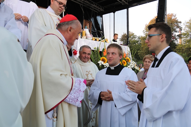Mszy św. przewodniczył kard. Kazimierz Nycz, metropolita warszawski, w dykasteriach watykańskich: członek Kongregacji ds. Kultu Bożego i Dyscypliny Sakramentów, członek Kongregacji ds. Duchowieństwa, członek Papieskiej Rady ds. Kultury; w ramach Konferencji Episkopatu Polski członek Rady Stałej, przewodniczący Rady Ekonomicznej, członek Zespołu ds. Kontaktów z Konferencją Episkopatu Niemiec. Wraz z nim modlili się: biskup kaliski Edward Janiak, biskup pomocniczy diecezji kaliskiej Łukasz Buzun, bp senior Stanisław Napierała, bp senior Teofil Wilski, dyrektor Radia Maryja o. Tadeusz Rydzyk, ks. prałat Jacek Plota, kilkudziesięciu kapłanów oraz licznie zgromadzeni pielgrzymi z całej Polski.