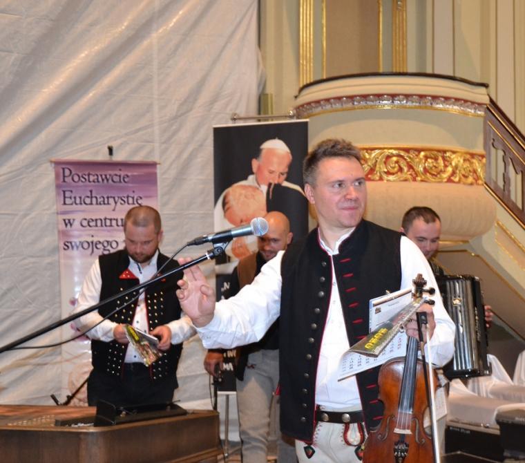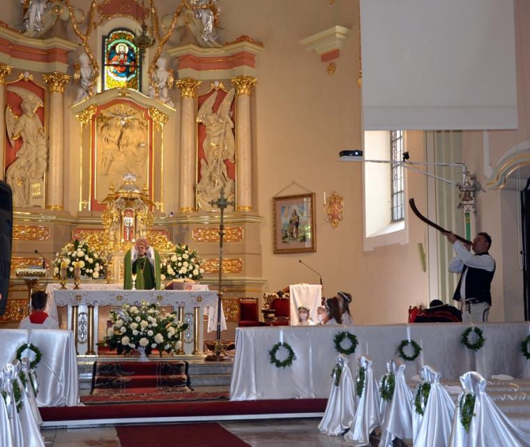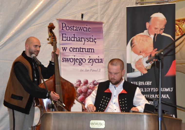 W niedzielne przedpołudnie mieliśmy okazję uczestniczyć w jednym z nich zatytułowanym „ Nuty góralskie o św. Janie Pawle II”. Poprzedziła go Eucharystia, którą w sposób aktywny włączyli się członkowie Kapeli „Góralska Hora”. Mieliśmy okazję wysłuchać czytań, które tym razem wybrzmiały w naszym kościele w gwarze góralskiej. Odśpiewany psalm, był próbką uczty duchowej, która czekała nas po Eucharystii. Także podczas Przeistoczenia, tym razem, nie rozległ się głos dzwonków, ale rogu pasterskiego.