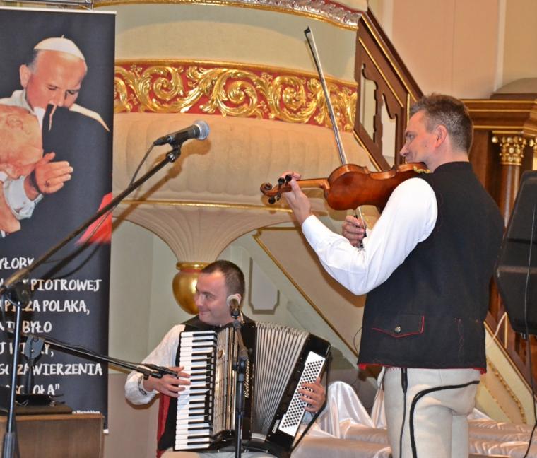Po Mszy świętej odbył się koncert Zebrani w kościele usłyszeli wyjaśnienie znaczenia nazwy Kapeli. Było kilka słów o miłości św. Jana Pawła do gór. Potem dźwięki góralskiej muzyki wypełniły naszą świątynie. W doświadczeniu klimatów górskich i miejsc, które szczególnie ukochał Papież – Polak pomocna była prezentacja multimedialna.