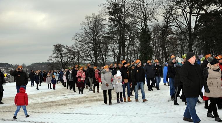 Około godz. 14:00 w kościele pw. Świętej Trójcy zaczęli zbierać się uczestnicy Królewskiego Orszaku. Tu odbyła się jego pierwsza część, którą poprowadził ks. Szymon Grzeszkiewicz, proboszcz parafii pw. Zwiastowania Pańskiego. Rozpoczynając ks. Szymon podkreślił, że spotykamy się po raz pierwszy, wspólnie, dekanalnie, by obchodzić obchodach Święta Objawienia Pańskiego, by wziąć udział w Orszaku Królewskim. Zaakcentował, że uczestnicy Orszaku podobnie jak Mędrcy ze Wschodu udają się, by oddać pokłon Jezusowi, ale także dać świadectwo swojej wiary. Następnie ks. Szymon skierował słowa powitania do wszystkich tych, którzy przybyli wraz ze swoimi parafiami. W postacie królów wcielili się księża proboszczowie. Kapłan podkreślił, że Orszak Trzech Króli, nie ma długiej tradycji, ale coraz więcej miejscowości włącza się w tę radosną formę świętowania i wspólnego kolędowania.