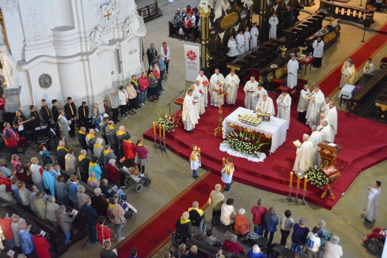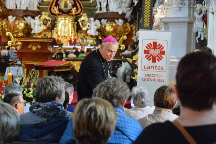 W południe Mszy św. w bazylice przewodniczył biskup legnicki Zbigniew Kiernikowski. Obecny był również bp Marek Mendyk, wieloletni duszpasterz osób niepełnosprawnych, księża z legnickiej Caritas oraz księża pracujący z osobami niepełnosprawnymi oraz pracujący w okolicznych parafiach.