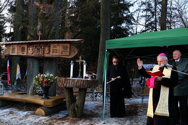 - Moim marzeniem było utworzenie w lesie miejsca kultu religijnego oraz pamięci ku czci leśników i myśliwych, którzy wyrośli z jednego pnia. Z racji obchodzonego Nadzwyczajnego Roku Świętego Józefa Kaliskiego umieściliśmy obraz Świętej Rodziny, a symbolami 100. rocznicy odzyskania przez Polskę niepodległości są rzeźby św. Jana Pawła II i Marszałka Józefa Piłsudskiego – powiedział w rozmowie z KAI myśliwy Józef Bażant z Koła Łowieckiego nr 37 „Słonka” w Dzierzbinie, który dodaje, że w wykonaniu dzieła pomogli mu artyści Tadeusz Jarczewski i Bolesław Białecki.
