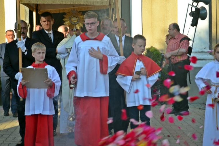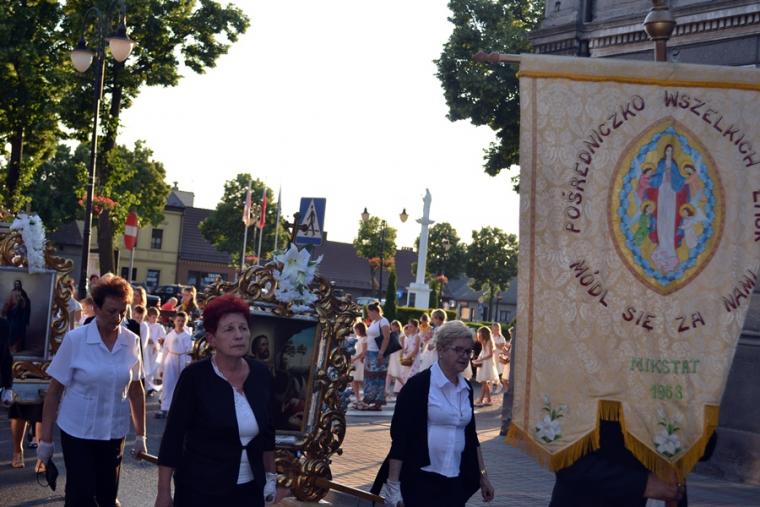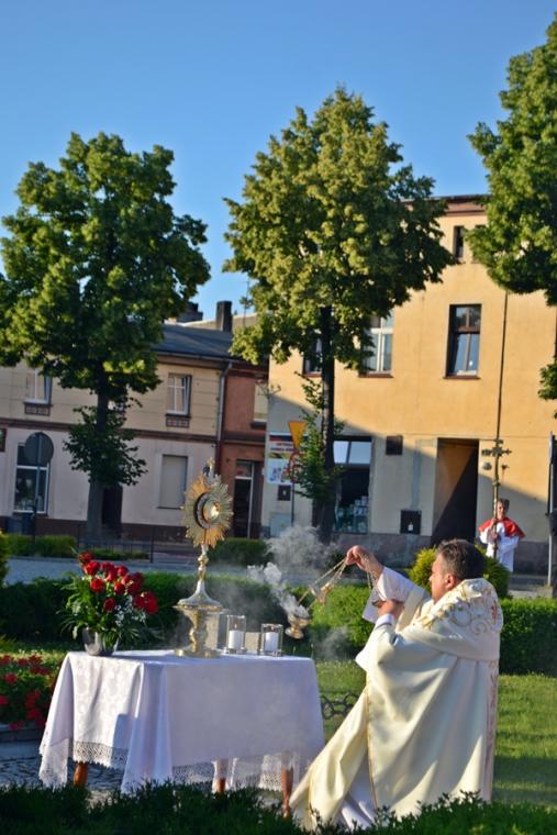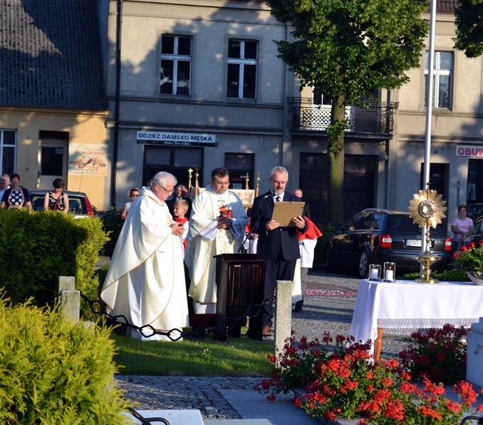 Po Mszy Świętej procesja z Najświętszym Sakramentem wyruszyła na rynek. Znajduje się tam figura Najświętszego Serca Pana Jezusa ufundowana przez mieszkańców. Została poświęcona 12. lipca 1936 roku Ks. Bpa Dymka. W czasie uroczystości poświęcenia ówczesny Burmistrz miasta Pan Franciszek Toboła odczytał akt poświęcenia się miasta Najświętszemu Sercu Pana Jezusa. 8. czerwca A.D. 2018 roku słowa aktu wybrzmiały ponownie. Odczytał je tym razem pełniący obecnie obowiązki Burmistrza Miasta i Gminy Mikstat pan Henryk Zieliński. Obecni na mikstackim rynku usłyszeli m.in. takie słowa: „Przychodzimy więc dzisiaj, by uznać całkowite panowanie Twoje nad miastem naszem. Chcemy odtąd Twojem życiem żyć, chcemy w sobie te cnoty pielęgnować, za które już tu na ziemi pokój obiecałeś(...). Panuj więc nad naszym rozumem przez prostotę wiary, panuj też przez swą miłość nad sercami naszemi, które niech całkowicie nią zapłoną. Chcemy je w Twej żarliwej miłości utrzymać przez częste przyjmowanie Komunii św. Racz, Boskie Serce, przewodzić naszym zebraniom, błogosław nasze duchowne i doczesne przedsięwzięcia, rozpraszaj nasze troski, uświęcaj nasze pociechy i łagódź nasze cierpienia". Jak aktualne pozostają nadal słowa wypowiedziane przed ponad osiemdziesięciu laty. Po odczytaniu aktu poświęcenia się miasta Najświętszemu Sercu Pana Jezusa wybrzmiały słowa pieśni: „Najświętsze Serce Boże, poświęcamy Ci Naszą Ojczyznę i nasze miasto, Nasze rodziny i nas samych; Serce Boże, przyjdź Królestwo Twoje”. W kontekście odnowionego aktu nabrały one wyjątkowego znaczenia. Następnie przy ustawionym nieopodal figury Najświętszym Sakramencie została odmówiona Litania do Najświętszego Serca Jezusowego. Następnie Ks. Kan. Krzysztof udzielił błogosławieństwa Najświętszym Sakramentem na cztery strony świata. Potem procesja powróciła do kościoła. Udział w uroczystościach ku czci Najświętszego Serca Pana Jezusa był publicznym wyznaniem wiary, świadectwem, dla tych, którzy nie dostrzegają jeszcze być może, bądź nie odkryli bogactwa miłości i wielości łask spływających na ludzkość z przebitego Serca Pana Jezusa.