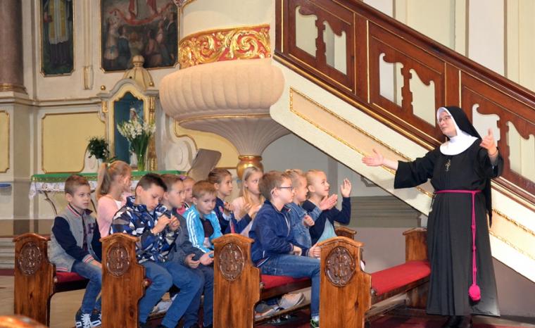 Podczas tej Eucharystii lekcje odczytane zostały przez siostrę Małgorzatę i siostrę Sylwię. Dzieci uczęszczające do świetlicy prowadzonej przez siostry przygotowały modlitwę powszechną. W dialogowanej homilii z dziećmi ks. kan. Krzysztof nawiązując do słów Ewangelii zaakcentował, że każdy z nas jest bardzo cenny w oczach Boga. Bóg każdego woła i szuka. Gdy Bóg nas woła możemy przyjść do kościoła, a gdy zdarzy nam się zrobić coś złego Pan Jezus czeka na nas w sakramencie pokuty. Ksiądz kanonik zachęcił dzieci, by wkleiły do zeszytu 1 grosz, który będzie im przypominał o tym, że są bardzo ważne dla Boga. W procesji z darami przyniesiono: płonącą świecę, kwiaty,winogrona, chleb, wodę i wino, hostię.