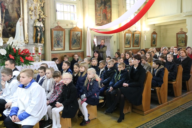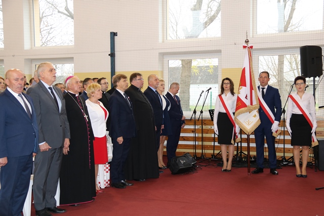 Podkreślał, że szkoła winna pielęgnować i rozwijać w młodych ludziach prawdziwy patriotyzm. – Trzeba pielęgnować miłość ojczyzny, którą deklaruje się nie tylko w słowach, uroczystościach, obchodach, ale przede wszystkim życiem i czynem, a to wymaga niekiedy ofiary. W naszych czasach słowo ojczyzna jest zakazywane, wymazywane ze słownika. Nie wolno używać w niektórych środowiskach i nawet państwach słowa ojczyzna – mówił celebrans.