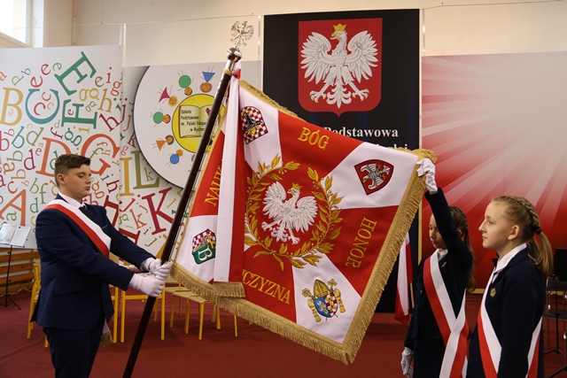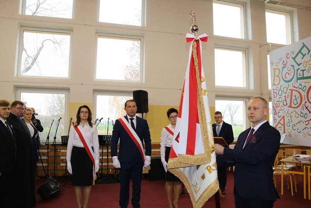 Mszy św. w kościele pw. Wszystkich Świętych w Rychnowie przewodniczył bp Stanisław Napierała, który poświęcił sztandar szkoły.