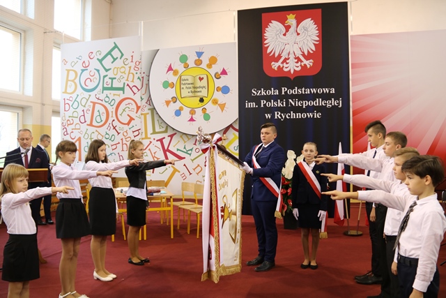 W budynku szkoły w Rychnowie odbyła się uroczystość nadania szkole imienia Polski Niepodległej i przekazania sztandaru ufundowanego przez Ewę i Zbigniewa Prusów oraz proboszcza ks. Przemysława Krzywańskiego. Podczas uroczystości odczytany został list prezydenta RP Andrzeja Dudy, który objął nad uroczystością narodowy patronat. W programie artystycznym zaprezentowali się uczniowie Szkoły Podstawowej w Rychnowie, zespół wokalny „Dynamitki” działający przy Gminnym Ośrodku Kultury w Blizanowie i Młodzieżowa Orkiestra Dęta OSP w Rychnowie.