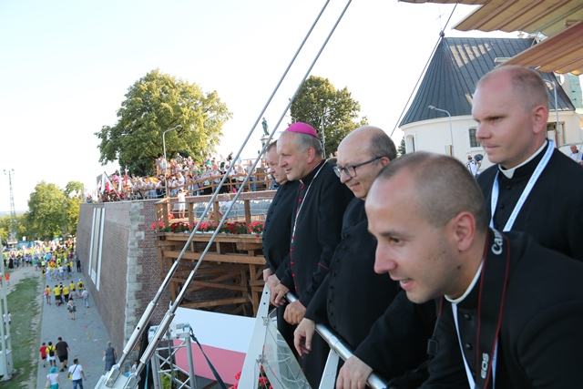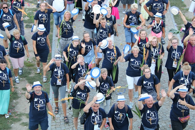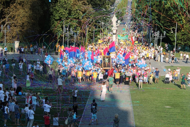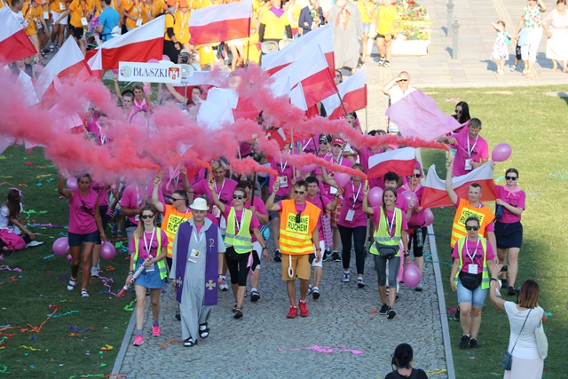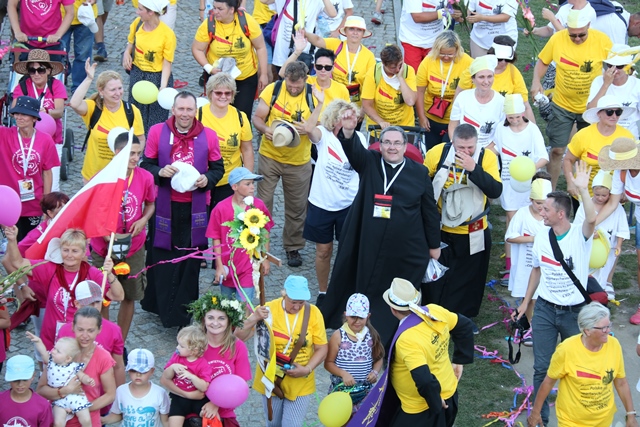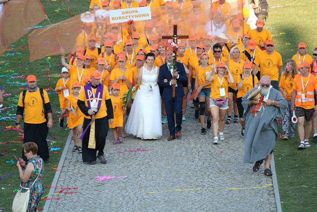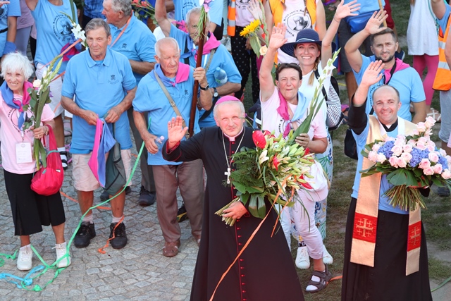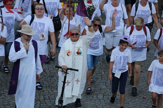 Jako pierwsza na Jasną Górę weszła grupa różowo-niebieska z Narodowego Sanktuarium św. Józefa w Kaliszu, której przedstawiciele nieśli obraz św. Józefa Kaliskiego. Na czele szli: bp Łukasz Buzun i ks. prał. Jacek Plota, kustosz kaliskiej bazyliki. – Aspekt Nadzwyczajnego Roku Świętego Józefa Kaliskiego podkreśliło wejście na Jasną Górę z obrazem św. Józefa, który na początku istnienia diecezji kaliskiej peregrynował po wszystkich parafiach i teraz umieszczony jest w kaplicy seminaryjnej. Było to symboliczne przejście św. Józefa do Maryi, czyli z Narodowego Sanktuarium św. Józefa do Narodowego Sanktuarium Matki Bożej – zaznacza ks. Rafał Grzęda.
