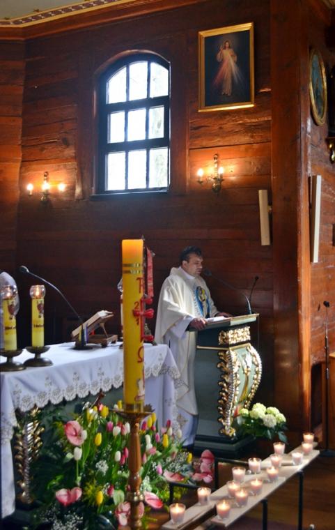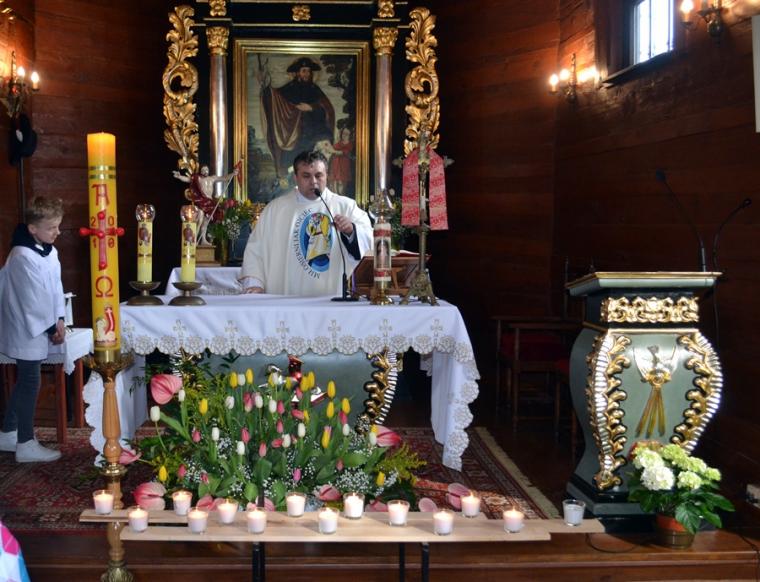 Przygotowani duchowo wkroczyliśmy w Niedzielę Miłosierdzia. Jest już tradycją, że w tym dniu sprawowana jest Eucharystia o wszelkie łaski potrzebne dla czcicieli Bożego Miłosierdzia z Mikstatu i Komorowa. O godz. 9:30 Msze św. w tej właśnie intencji sprawował ks. wikariusz Krzysztof Lipiński. Przed rozpoczęciem Eucharystii ks. kan. Krzysztof Ordziniak poświęcił obraz Jezusa Miłosiernego, który został ofiarowany do naszego kościoła przez p. Adama Joksa i jego małżonkę z dziećmi. Niedziela Miłosierdzia jest dniem szczególnych łask. Przepełnieni wiarą w potrzebę doświadczania Bożego Miłosierdzia przez nas samych, ale także bliskich, którzy poprzedzili nas w drodze do Pana, zebraliśmy się w tym szczególnym dniu, o godz. 15:00 w Diecezjalnym Sanktuarium Świętego Rocha na Koronce do Miłosierdzia Bożego, by polecać w niej bliskich zmarłych. Modlitwie przewodniczył ks. kan. Krzysztof Ordziniak. Po Koronce do Miłosierdzia Bożego odprawiane zostało nabożeństwo Drogi Światła. Mieliśmy okazję przeżyć 14 spotkań ze Zmartwychwstałym Panem. Na ołtarzu została ustawiona figura Chrystusa Zmartwychwstałego i czternaście lampek, które kolejno odpalane były od paschału. Towarzyszył temu śpiew „ My jesteśmy na ziemi…”. Ks. kan. Krzysztof odczytywał rozważanie poszczególnych spotkań z Jezusem zmartwychwstałym. Zapewne skłoniły one wielu do refleksji na jakim etapie drogi jestem? Którego spotkania ze Zmartwychwstałym Panem potrzebuję obecnie? Czy może zatrzymałem(am) się przy pustym grobie? A może tak jak Maria Magdalena szukam Pana? Warto dodać, że w zwieńczeniu ołtarza głównego znajduje się jej obraz. A może jak uczniowie z Emaus na swojej życiowej drodze nie dostrzegamy Jezusa? A może jak Tomasz potrzebujemy, by Pan umocnił naszą wiarę? Po nabożeństwie Drogi Światła w sanktuarium ks. kan. sprawował Mszę w intencji czcicieli Miłosierdzia Bożego z Mikstatu i Komorowa. Kiedyś ks. kan. odpowiedział na wezwanie Pana „ Pójdź za Mną” - tak. Dziś w Jego kapłańskich dłoniach chleb przemienił się w Ciało Chrystusa. Być może tak jak uczniowie poznaliśmy i doświadczyliśmy właśnie wtedy obecności Zmartwychwstałego. Niedziela Miłosierdzia rozpoczyna 74. Tydzień Miłosierdzia. Sami doświadczamy miłosierdzia od Boga, zwłaszcza w Sakramencie Pokuty i Pojednania. Czy to doświadczenie pomoże nam się otworzyć na potrzeby innych?