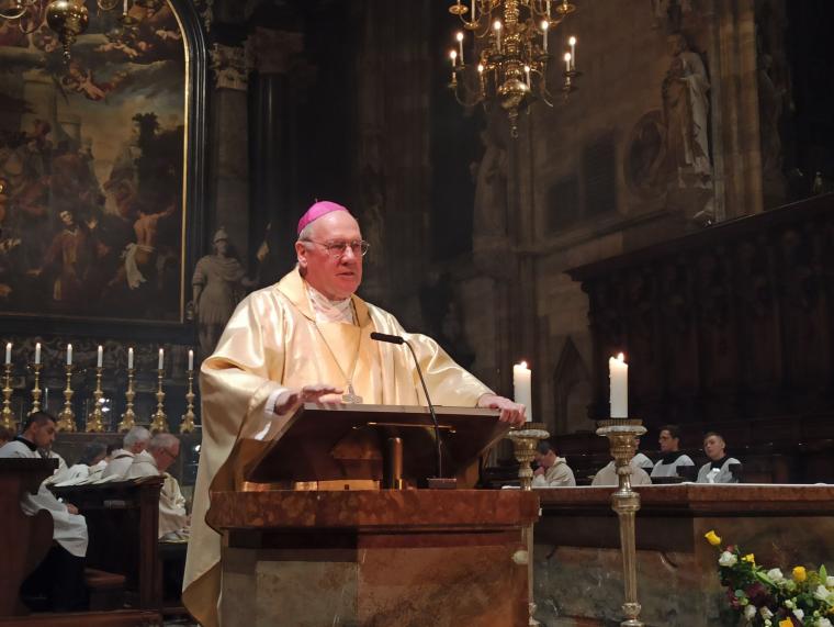"Wszyscy tu dzisiaj zgromadzeni jesteście wielbicielami Jana Pawła II, papieża, który beatyfikował i kanonizował więcej osób niż ktokolwiek przed nim” – zwrócił się bp Schwarz do wiernych przybyłych do katedry z całego Wiednia. Nie zabrakło także Polaków, licznie reprezentowanych przez wspólnoty i organizacje polskie oraz osoby prywatne. Alois Schwarz celebrował Mszę św. w ornacie, który Karol Wojtyła miał na sobie podczas sprawowania liturgii w katedrze św. Szczepana w 1983 r.