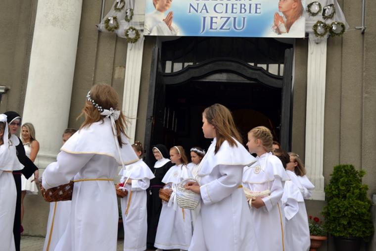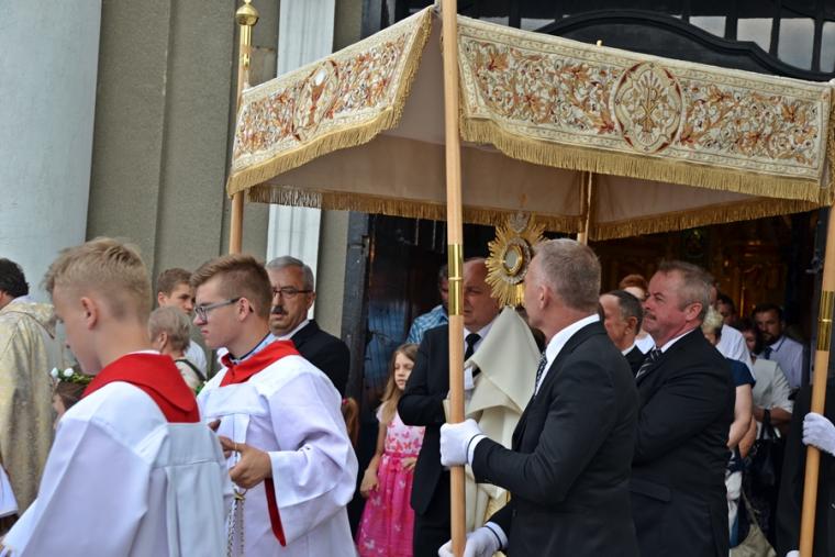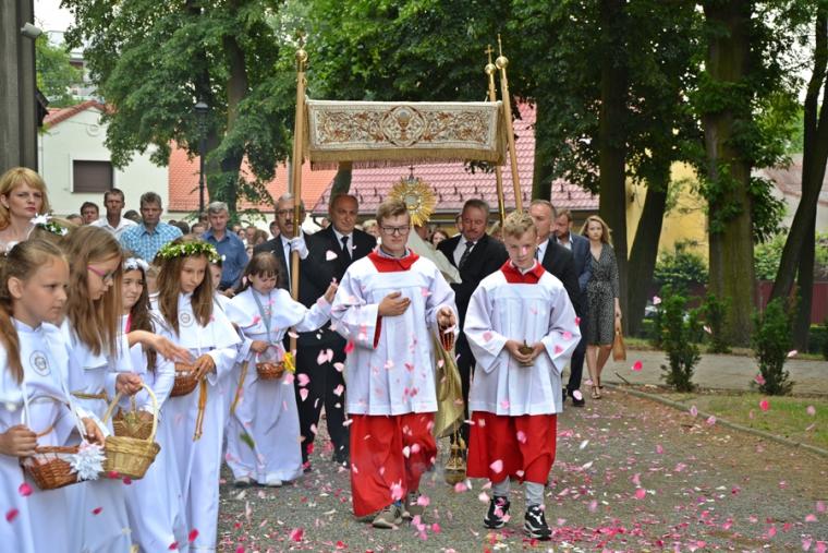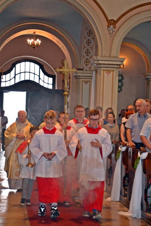 W procesji z darami dzieci przyniosły chleb wodę i wino oraz hostie. Po zakończeniu Mszy Świętej został wystawiony Najświętszy Sakrament i odmówiona Litania do Trójcy Przenajświętszej, a następnie wyruszyliśmy z procesją wokoło kościoła. Po błogosławieństwie udzielonym Najświętszym Sakramentem licznie zebranym w mikstackim wieczerniku wiernym wybrzmiała pieśń „Boże coś Polskę…”.